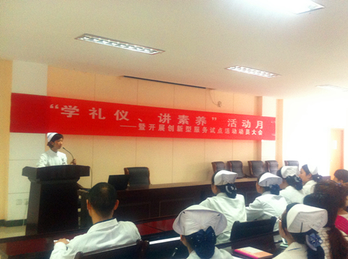 4.27下午,我院召開全院護理人員“學禮儀、講素養(yǎng)”活動動員大會。會上潘院長做了重要講話,把5月份定為“學禮儀、講素養(yǎng)”活動月。本次活動圍繞2015年醫(yī)院開展“優(yōu)質(zhì)服務年”為契機,利用5.12護士節(jié)期間,掀起“學禮儀、講素養(yǎng)”的熱潮。旨在規(guī)范護理禮儀,更深刻的認識禮儀素養(yǎng)對醫(yī)療工作的重要性,糾正和改變護理行為中的不文明言行。通過這次活動的開展,使護理人員自覺樹立良好的服務形象,進一步認真落實以“病人為中心的”的服務理念,加強服務意識,改善患者就醫(yī)體驗,營造講素養(yǎng)、懂禮儀的和諧環(huán)境,提升醫(yī)院的精神文明建設和服務品牌。(護理部報道)