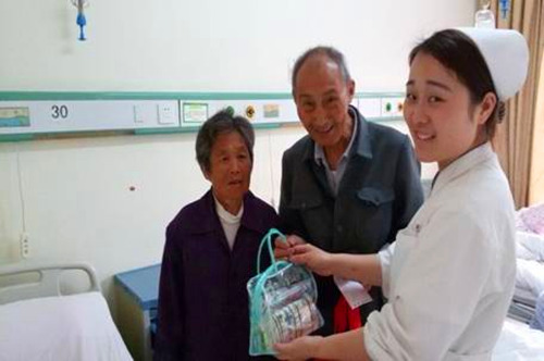 五月有我們護士的節(jié)日---護士節(jié),醫(yī)院本著“真誠關(guān)懷、倡導(dǎo)仁愛”的理念,護理部將五月定為“學(xué)禮儀,講仁愛”活動月,在這個活動月中,每位患者都能細心感受到醫(yī)院對他們的真誠關(guān)懷。從5月1日起,每位住院患者都能領(lǐng)取一份“生活用品”小禮物。每位患者述說的語言雖然都不盡相同,但表達的意思竟是那樣的一致,那就是非常感謝醫(yī)院對他們的備至關(guān)懷。