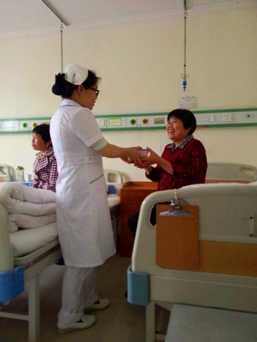 一位老病號(hào)李阿姨,是個(gè)冠心病患者, 她還伴有胃病,子女都在外地,老伴也早年去世了。每次住院她都是一個(gè)人,胃口不好,常常中午在外面炒一個(gè)菜,買一份飯,十幾塊錢,吃不完晚餐就接著吃冷飯,以前我們總勸她李阿姨你不能這樣吃,很傷身體的,她每次都笑著說:“沒事,我在家一個(gè)人懶得做飯也都吃上一餐剩下的”。這次入院我們主動(dòng)把她買來的飯熱好給她送過去,她很開心,不停的說:“謝謝你們,謝謝,你們就像是我的孩子,在這里比在家更溫暖”。沒想到只是一個(gè)小小的舉動(dòng)就能讓老人這么感動(dòng),我們發(fā)現(xiàn)病人要的真不多,我們只要一點(diǎn)愛心,病人就會(huì)對我們感恩,同時(shí)這也給了我們足夠的信心,一定要把這件事做好,堅(jiān)持下去。