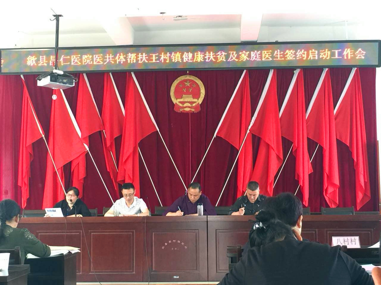 2018年5月3日上午,王村鎮(zhèn)衛(wèi)生和計(jì)生工作會(huì)議在鎮(zhèn)政府四樓會(huì)議室召開,會(huì)議由王村鎮(zhèn)常務(wù)副鎮(zhèn)長汪朝陽主持,王村中心衛(wèi)生院院長潘伍茍,鎮(zhèn)衛(wèi)計(jì)辦胡小芳,各村衛(wèi)生室主要負(fù)責(zé)人和村主任30余人參加。黃山昌仁醫(yī)院院長潘峻濤應(yīng)邀參加會(huì)議,并就2018歙縣昌仁醫(yī)院醫(yī)共體幫扶王村鎮(zhèn)健康扶貧及家庭醫(yī)生簽約啟動(dòng)工作作了重要發(fā)言。