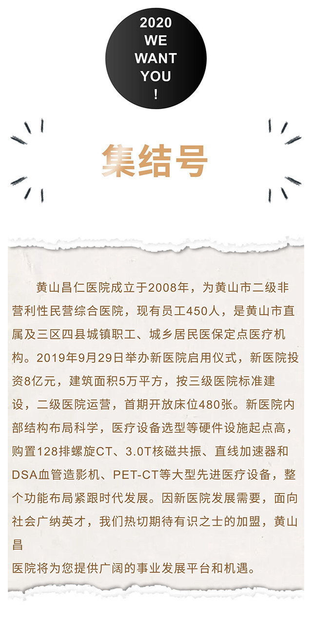 黃山昌仁醫(yī)院2020年度招聘公告